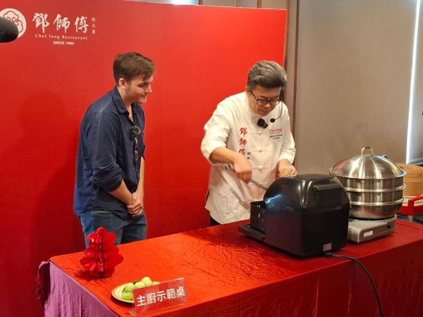 圖4:鄧師傅功夫菜廚藝總監鄧至廷(右)展現廚藝,教導國際友人製作鄧師傅功夫菜。