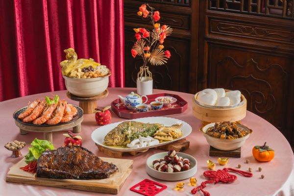 集結品牌經典手路菜與頂級海陸食材,為家庭圍爐端上圓滿又富吉兆的年菜盛宴。以「鮑魚烏參佛跳牆」領銜,熬煮六小時的老母雞金黃雞湯,匯聚黑玉烏參、鮑魚、干貝與究好豬豬腳,湯鮮料豐的圍爐壓軸珍饌;「干燒黃金鯧」選用台灣海水養殖黃金鯧,佐紹興酒、酒釀、蝦米熬製清新干燒醬,細嫩鮮美;「玫瑰油雞」以埔里玫瑰露酒浸製放山雞肉Q彈多汁;「一品烏參」黑玉烏參內鑲鮮嫩肉餡,滑潤豐郁;「梅汁叉燒排骨」上等腩排以梅子蜜汁慢烤,回甘濃郁;「富貴雙方」蜜汁金華火腿搭配酥脆豆腐皮,甜鹹交融。