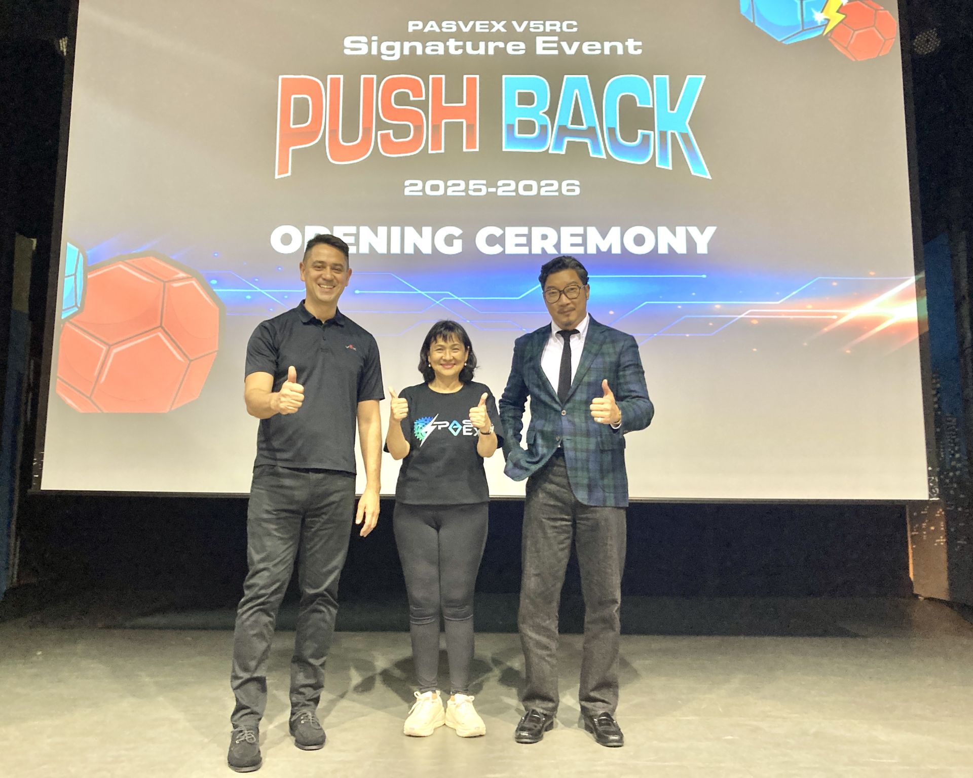 ▲全球唯一美加以外最大VEX機器人錦標賽「PASVEX 2025 機器人世界錦標賽」在亞太美國學校盛大登場,亞太美國學校校長朱家明(中)、 VEX 亞洲區代表 Andy Lee(左)、美國喬治亞理工大學(Georgia Tech)亞太區發展總監 Shelton Chan(右)一同於開幕式合影。