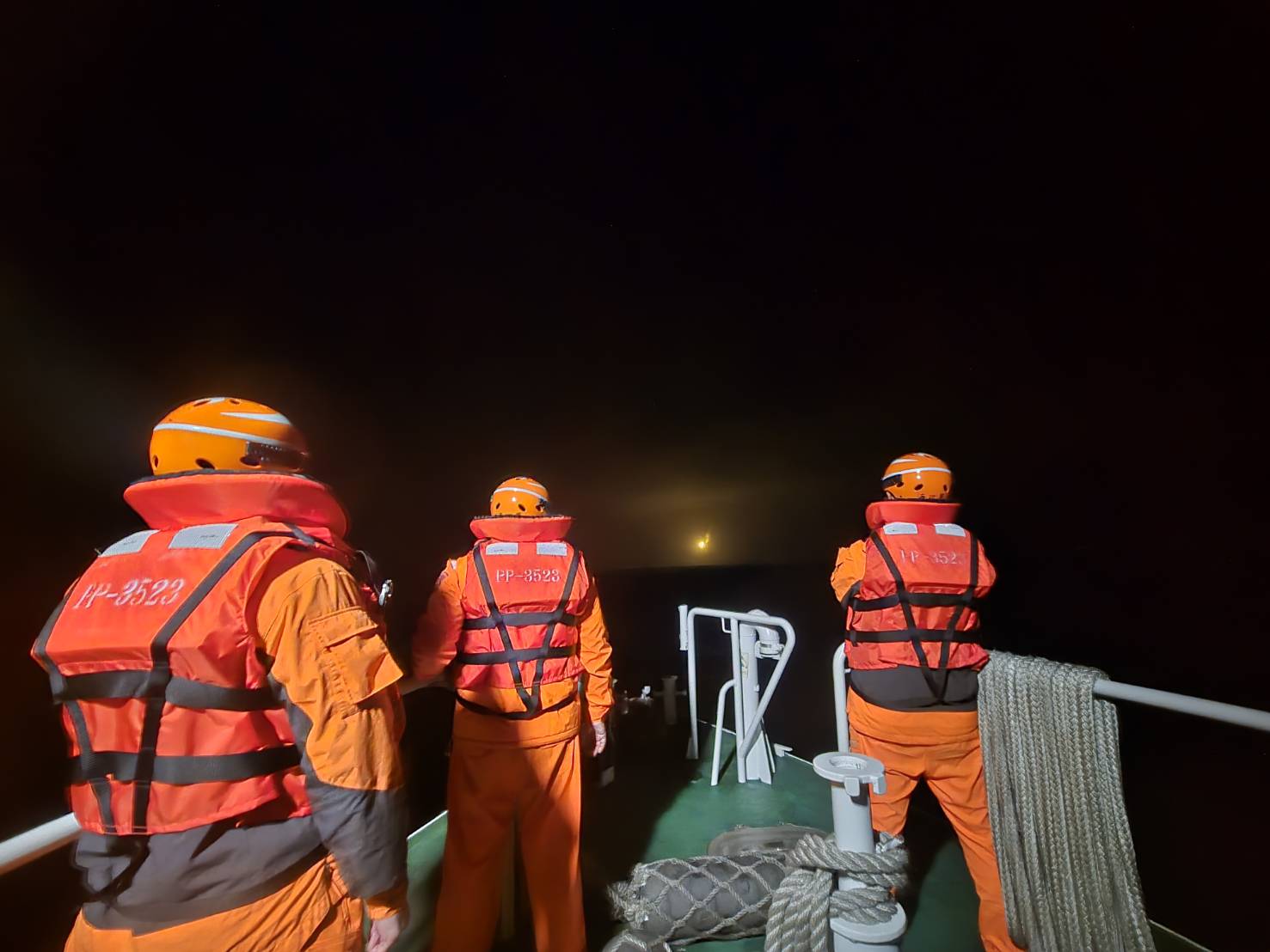 海巡署表示,PP-10095、10078巡防艇趕抵現場後,立即施放海難測流浮標(SLDMB),並結合「搜救優選規劃系統」預測位置,掌握海流漂流方向,全面部署艦艇搜救責任區。現場海域受大陸冷氣團影響,海象極為惡劣,風力達 6 至 7 級、陣風 9 級,浪高 3 公尺,且入夜後氣溫驟降,海巡同仁仍全力與空中能量緊密配合,冒著低溫巨浪與時間賽跑,全力投入救援行動。