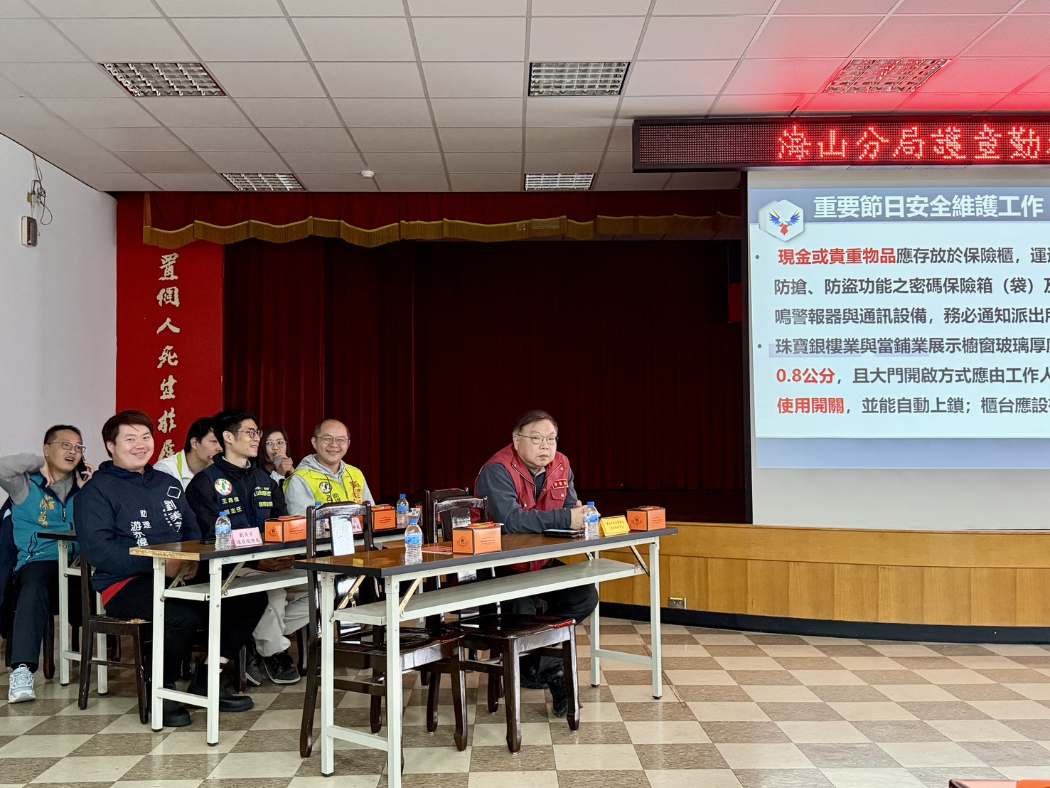因應春節連續假期即將到來,海山分局將以「治安平穩、交通順暢、民眾安心」三大工作主軸為執勤重點,全力投入安維工作,展現守護家園的決心,確保轄區民眾在春節期間都能享有安心、安全的生活環境。