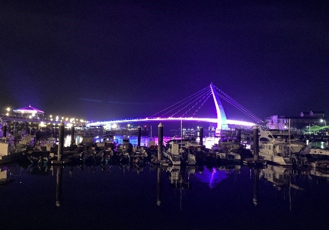 港區地標情人橋更是不可錯過的必訪景點,白日裡猶如白色風帆橫跨港區,與藍天碧海相互輝映,成為淡水最具代表性的港灣地標;傍晚時分夕陽西下,金黃餘輝灑落水面,形成浪漫絕美的夕照畫卷,吸引不少遊客與攝影愛好者前來追逐落日,淡水夕照亦是臺灣八景之一。