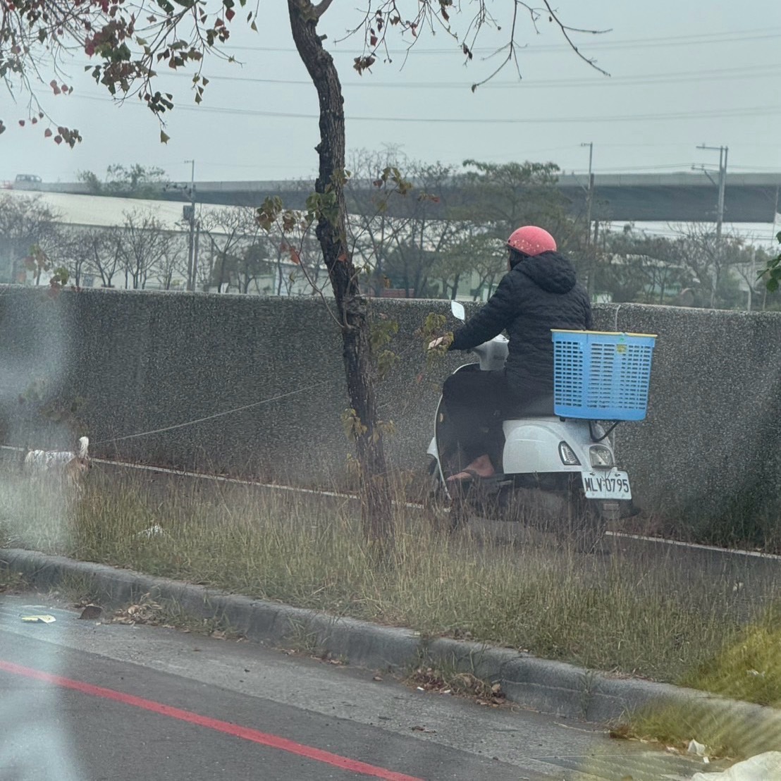 ▲台南市和順工業區廠區協會理事長陳文祥目擊機車騎進山海圳自行車步道。(陳文祥 提供)