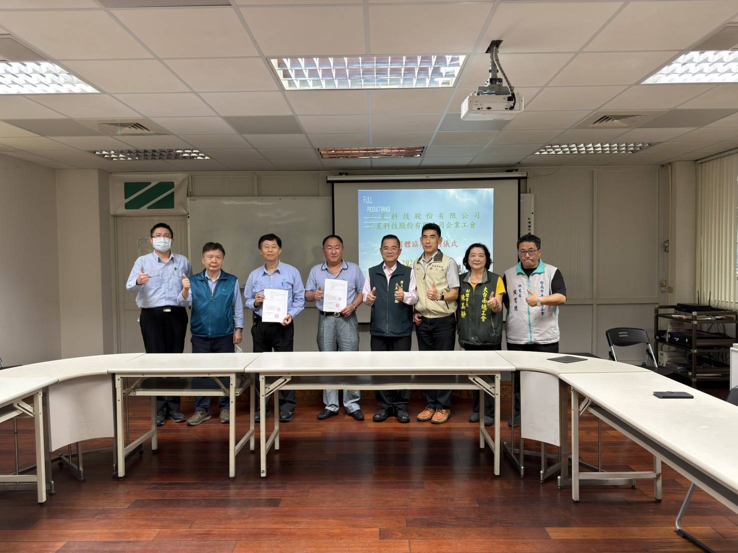 此次簽約儀式於三星科技股份有限公司舉行,由曾家齊經理、工會理事長謝勝利及監事會召集人黃昭欽等人出席,並由臺南市政府勞工局局長王鑫基、大台南總工會副理事長陳美靜及台南市產業總工會秘書長黃育德共同見證,象徵勞資政三方攜手合作,共同促進勞資關係穩健發展。