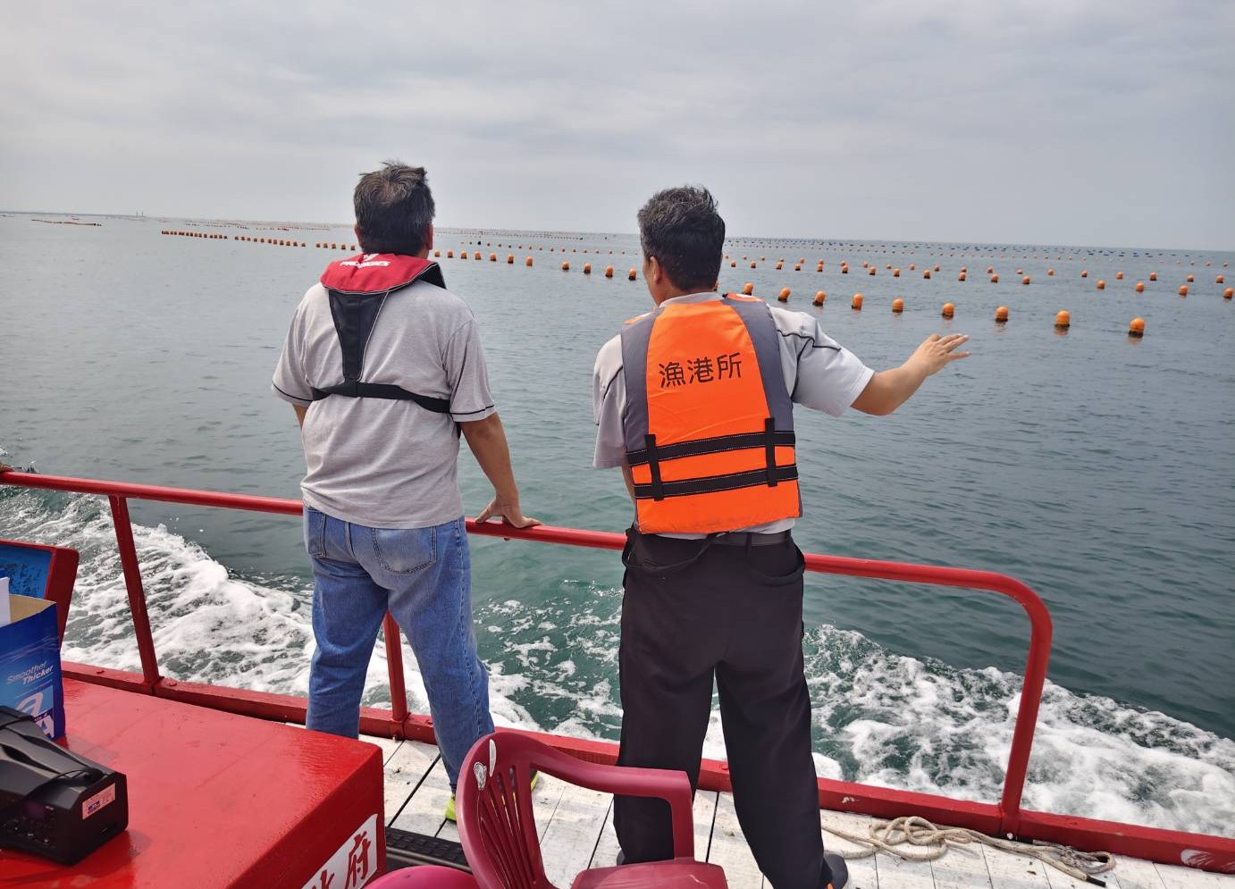 李芳林局長表示,針對養蚵保麗龍浮具改善問題,近年來積極向中央機關爭取經費補助漁民購買「改良式浮具」,鼓勵逐步汰換使用環保、耐用且可回收之新式浮具,並宣導自115年10月起,養殖蚵棚全面禁止使用保麗龍浮具,以落實海洋環境保護及推動養殖產業永續發展;另針對廢棄蚵棚處理問題,市府除透過強制蚵棚回收及即時清理機制,將每年回收蚵棚清離海岸;並為減少蚵棚回收處理成本,近年來辦理新式蚵棚海上試驗,已初步掌握新式設施抗風浪表現與改良方向,未來將持續精進結構設計與管理模式,朝向耐用及實用之目標邁進。