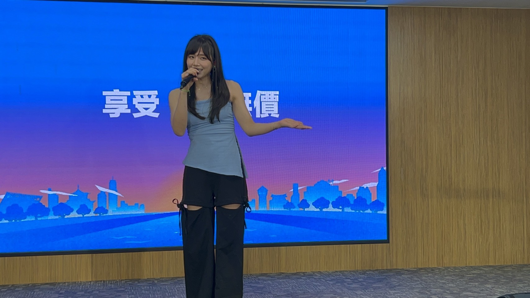 ▲臺南女兒吳汶芳記者會現場獻唱一首歌曲。(記者黃雋淮 攝)