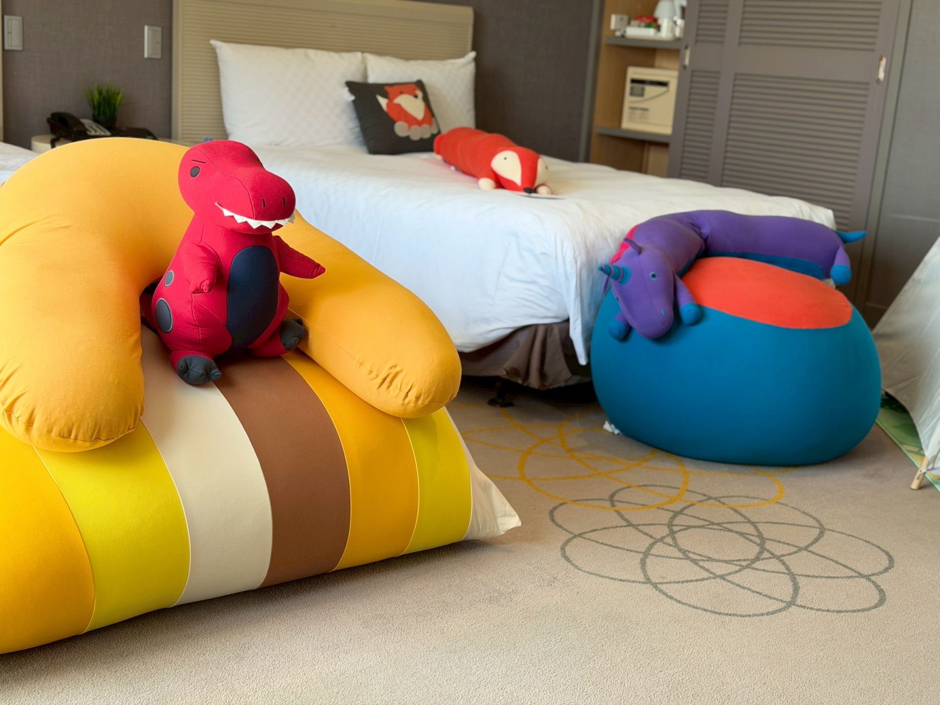 ▲新竹老爺酒店特別攜手yogibu推出期間限定「森林小聚」限量親子房,yogibu包覆式懶骨頭家具,打造專屬主題客房。(圖/新竹老爺酒店提供)