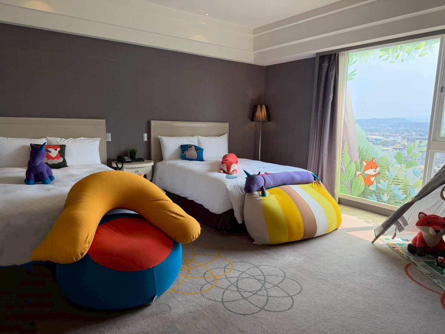 ▲竹老爺豪華家庭客房寬敞舒適,提供懶骨頭外還有小帳蓬供親子玩樂。(圖/新竹老爺酒店提供)