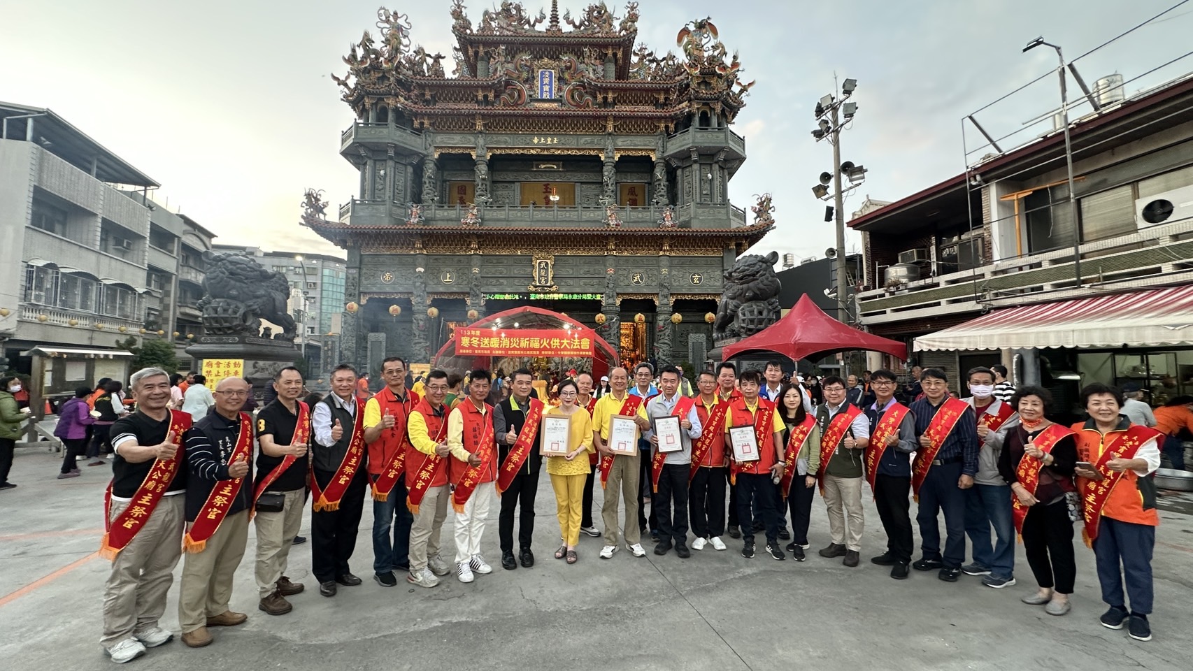 ▲環保祭祀與公益並行 大臺南凌霄寶殿武龍宮寒冬送暖。(記者黃雋淮 翻攝)