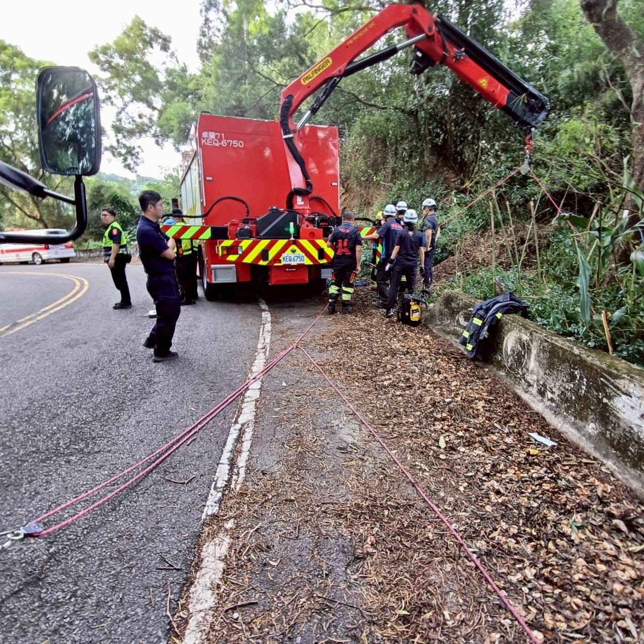 苗栗鯉魚潭水庫吉普車墜落50公尺邊坡 消防隊員吊掛救出駕駛